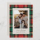Compartilhe o aconchegante espírito natalino com este clássico cartão de fotos de Natal xadrez vermelho e verde, apresentando uma borda xadrez atemporal e uma moldura de foto elegante. Perfeito para famílias, casais ou recém-casados, este design combina tradição e calor para o seu correio de Natal de 2025.