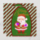 Este cartão de Natal desenhado à mão tem um Papai Noel alegre com biscoitos e cacau, emoldurado em listras de bastão de doce e cores natalinas aconchegantes. Personalize a parte inferior com o nome da família ou da empresa para torná-lo seu. Coloque sua própria mensagem no verso. Ótimo para presentes de adolescentes ou correspondência de Natal com personalidade.