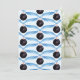 Celebre a época com este cartão de Natal moderno com um padrão repetitivo de enfeites pretos brilhantes amarrados com fitas azuis suaves. O design minimalista, porém festivo, combina elegância com um toque de charme invernal, tornando-o perfeito para enviar saudações de Natal elegantes a amigos, colegas ou entes queridos. Impresso em papel matte de alta qualidade para uma aparência refinada e contemporânea