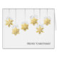 ornamentos em flocos de neve de ouro com arcos prateados em fundo branco