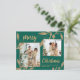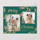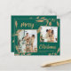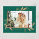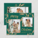Orçamento, Elegante, Moderno Verde e Dourado Folhas Botânicas 2 Foto Colagem Cartão Alegre Natal Férias (fino!) . Nota: papel mais fino do que um cartão-postal! Este festivo e caprichoso modelo de cartão de Natal com duas (2) fotos apresenta uma bonita colagem de fotos, folhas botânicas em falso papel dourado, frutinhas de inverno e diz Feliz Natal! O texto de saudação "Feliz Natal" é escrito em uma bela fonte tipográfica manuscrita sobre um fundo verde floresta escuro ou verde azulado. No verso, uma foto horizontal com moldura dourada e arranjo de folhas em falso papel glitter dourado sobre verde. Uma ótima escolha para sua família e amigos nesta temporada de Natal e Férias. Cartões de Natal baratos.