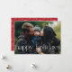 Este cartão de Natal elegante apresenta "férias felizes" sobre a foto da sua família. O suporte personalizado tem espaço para mais duas fotos e uma saudação personalizada da sua família, acentuada com um padrão de flocos de neve. Personalize as cores para combinar com a foto da sua família!