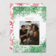 Cartão de Natal com Foto de Folhas de Inverno em Aquarela Branca e Verde. Um belo design de cartão com folhas e pinheiros desenhados à mão em aquarela criando uma moldura para um cartão de Natal elegante com sua foto na frente e um fundo padronizado. Você também pode substituir o fundo por outra foto de sua escolha.