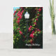 Cartão de Natal com candeeiro e flores vermelhas. Uma cena muito bonito para os feriados.