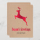 Cartão de saudação natalício de estilo na moda, feito em uma aparência de papel de artesanato, com um formato de folha vermelha, no topo da placa. A folha vermelha parece um texto gráfico lendo saudações da temporada, decora a metade inferior do cartão, com texto personalizado preto pronto para personalizar com o nome da sua empresa.