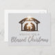 Compartilhe o verdadeiro espírito da época de férias com esta maravilhosa design de Natal da cena da natividade. Apresentando uma silhueta minimalista de Maria, José e Jesus bebê sob uma estrela brilhante, esta design transmite uma mensagem sincera, "Desejando-lhe um Natal abençoado". Perfeito por enviar desejos calorosos e espirituais à família e aos amigos.