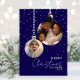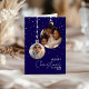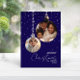 Celebre a estação festiva com este elegante cartão de Natal com fotos da sua família, fotos dentro penduradas em um fundo marinho profundo coberto de neve em queda. Uma combinação perfeita de charme clássico de feriado e personalização moderna para compartilhar seus desejos calorosos com entes queridos.