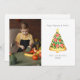 Ilustração de uma fatia de pizza em forma de árvore de Natal decorada com coberturas vermelhas e verdes e uma estrela no topo. Personalize o nome, ano e foto.