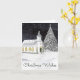 Este cartão de Natal apresenta uma pintura de aquarela original de uma igreja sertaneja sob um céu estrelado.