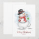 Cartão de Natal de aquarela do boneco de neve
