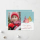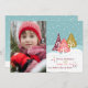 Uma cena retrô com neve e três árvores abstratas faz um cartão de Natal encantador quando personalizado com sua foto.