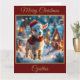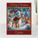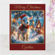Uma doce cabra de Natal em uma charmosa vila de neve neste cartão de Natal encantador. Adicione seu próprio texto personalizado.