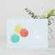 Bolas de Natal cintilantes penduradas por uma fita prateada brilhante e uma foto da família.