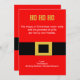 HO HO HO! Coloque um sorriso nos rostos de seus amigos e familiares com este lindo cartão de saudação de Natal. É de jaqueta Papai noel, um vermelho brilhante com um cinto preto no centro que tem uma fivela de ouro quadrada. Personalize com todas as informações do seu partido. Veja os muitos outros estilos e cores que temos nas cartas.