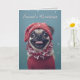 Este cartão de Natal bonito apresenta um adorável cão de cão vestido para neve com chapéu vermelho, abafador e casaco. Você pode personalizar a saudação na frente e a mensagem dentro da placa de acordo com o seu gosto.