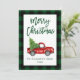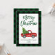Roteiro do Pincel Watercolor Vintage Red Truck com Árvore de Natal - Cartão de Natal da Xadrez Verde
