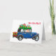 Papai Noel fofo em um carro antigo dizendo Ho Ho Ho! e Feliz Natal e Feliz Ano Novo dentro. Personalize o texto ao seu gosto.