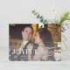 Este elegante cartão de Natal para salvar a data apresenta a saudação "alegres notícias" tornando-o ótimo para o casal que anuncia seu casamento próximo. Também é ótimo para anúncio de casamento de inverno ou cartão de primeiro Natal de casados!