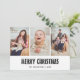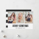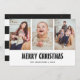 Foto em preto e branco Cartão de Natal Merry com listras brancas e pretas com ouro caindo neve no fundo. Personalize facilmente este cartão de feriado de colagem fotográfica com as suas fotografias e texto.