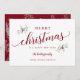 Este cartão de Natal não fotográfico é simples e elegante. Apresenta uma caligrafia suave com simples ramos de vírgula na frente. Digite seu nome e nome da família. As costas têm uma mariposa de Natal com folhagem de Natal e bagas.