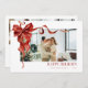 Deseje à sua família e amigos um Feliz Natal com um cartão de Natal vermelho para o arco de Natal DIY personalizado mostrando à sua família na frente embrulhado como um presente de Natal em um arco vermelho, e um verso com 3 fotos da família e uma nota editável em uma orientação horizontal. Esses Cartões de foto de Natal editáveis são uma forma perfeita de compartilhar a alegria do feriado e uma época de férias feliz. A coleção MATTEA apresenta uma foto da sua família embrulhada como um presente de Natal com a cor d'água, fitas vermelhas de Natal e um arco vermelho na frente com uma mensagem MERRY CHRISTMAS em um serif decorativo de rico em vermelho e o nome da sua família e o ano em um serif clássico em vermelho. Um verso opcional é incluído com três fotos da família e uma nota, juntamente com o mesmo arco de Natal vermelho presente. Fitas de Natal vermelhas e um grande arco adoram um cartão de feriado fotográfico que mostra sua foto de família.