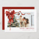 Deseje à sua família e amigos um Feliz Natal com um cartão de Natal vermelho para o arco de Natal DIY personalizado mostrando à sua família na frente embrulhado como um presente de Natal em um arco vermelho em uma orientação horizontal. Esses Cartões de foto de Natal editáveis são uma forma perfeita de compartilhar a alegria do feriado e uma época de férias feliz. A coleção MATTEA apresenta uma foto da sua família embrulhada como um presente de Natal com a cor d'água, fitas vermelhas de Natal e um arco vermelho na frente com uma mensagem MERRY CHRISTMAS em um serif decorativo de rico em vermelho e o nome da sua família e o ano em um serif clássico em vermelho. Fitas de Natal vermelhas e um grande arco adoram um cartão de feriado fotográfico que mostra sua foto de família.