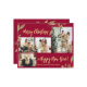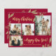 Orçamento, Elegante, Botânico Dourado moderno e Borgonha deixa 4 fotos com cartão de Natal feliz. Este modelo de cartão de 4 fotos, festivo, mimalista e cômico, apresenta uma bonito colagem fotográfica, folhas botânicas de folha de ouro falso, winterberry e diz Feliz Natal e Feliz ano novo! O texto de boas-vindas "Feliz Natal e Feliz ano novo!" é escrito em um belo tipo de letra tipográfica, com letra manuscrita, sobre o fundo vermelho do vinho ou cor burgundy. No verso, uma fotografia horizontal com a estrutura dourada e as folhas falsas de folha de alumínio dourada sobre a bordo. Bonito manutenção para sua família e amigos nesta época de Natal e Férias. Cartões de natal baratos.