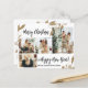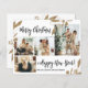 Orçamento, Elegante, Dourado moderno e branco deixa 4 fotos de colagem de fotos com um cartão de Natal feliz. Este modelo de cartão de 4 fotos, festivo, mimalista e cômico, apresenta uma bonito colagem fotográfica, folhas botânicas de folha de ouro falso, winterberry e diz Feliz Natal e Feliz ano novo! O texto de saudação de "Feliz Natal e Feliz ano novo!" é escrito em um belo tipo de letra tipografia escrita com letra preta em fundo branco. No verso, uma fotografia horizontal com a estrutura dourada e as folhas de folha de folhosas douradas dispostas em branco. Bonito manutenção para sua família e amigos nesta época de Natal e Férias. Cartões de natal baratos.