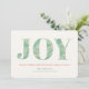 Este cartão de Natal / férias elegante apresenta a palavra "JOY" com folhagens e flores em tons verdes sobre um fundo branco marfim. O verso apresenta fundo verde com padrões de xadrez em dourado falso. Altere a cor do fundo e personalize-o para suas necessidades. Você pode encontrar produtos correspondentes na minha loja.