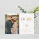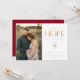 Uma emoção da ESPERANÇA um mundo cansado se regozija. Ouro "ESPERANÇA" e sotaque estrelado em folha falsa. Cartão de Natal com foto de solteiro. Cor vermelha do morango festivo e coordenação da tipografia neutra.