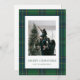 Celebrar os feriados com este cartão de Natal azul e xadrez verde. Um cartão fotográfico de Natal disponível para impressão ou download digital.