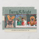 Mande alegria festiva com este cartão de feriado "Furry & Bright" divertido com cães adoráveis vestidos de fantasia natalícia! Com fotos bonitas de animais de estimação em galhadas de renas, uma árvore de Natal, boneco de neve e roupas de pão, este cartão certamente trará sorrisos para a família e amigos. A ousada inscrição vermelha e o confortável fundo de inverno acrescentam um charmoso toque sazonal. Personalize com os nomes e cartões de natal dos seus animais de estimação um cartão de Natal perfeito para pata que celebra a alegria da temporada com uma reviravolta peluda