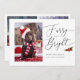 Cartão de modelo de Pet Photo de Natal bonito com um texto engraçado que diz "peluda e brilhante" num texto elegante. Adicione sua foto de cachorro ou gato. Você pode adicionar mais fotos atrás. Há uma ilustração aquarela de um erro.