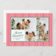 Pequenas faixas verticais, cor-de-rosa e vermelho-coral, dão a este cartão de três fotos uma vibração moderna e chic quando combinada com fontes clássicas em verde-floresta. O backer coordenado apresenta uma mensagem personalizada mais longa de alegria e atualização para o ano que é perfeito para enviar a amigos e familiares.