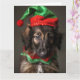 Afghan Hound Puppy, vestido como um dos elfos dos Papais noeis, deseja um Natal Pawsitivamente Maravilhoso e espera que você tenha um Yappy e Elfie New Year. Observe que as imagens são criadas digitalmente e nenhum cachorro foi forçado a vestir suéteres, saltadores, chapéus ou quaisquer outros itens no processo.