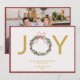Envie uma mensagem de feriado alegre com este elegante cartão de Natal com a palavra "JOY" com uma coroa festiva no lugar do "O", em conjunto com a sua foto de família favorita e a sua xadrez vermelha clássica. Personalize com seu nome, mensagem e ano para um cartões de natal sensato e maravilhosamente projetado.