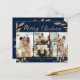 Orçamento, Elegante, Botânico moderno, Dourado e Marinho deixa 4 cartões de Natal Feliz (thin!) com colagem de fotos. Este modelo de cartão de 4 fotos, festivo, mimalista e cômico, apresenta uma bonito colagem fotográfica, folhas botânicas de folha de ouro, winterberry e diz Feliz Natal! O texto de saudação de "Feliz Natal" é escrito em um belo tipo de letra tipográfica com letras de mão sobre fundo azul-marinho. No verso, uma foto horizontal com a armação de ouro e folhas de folhosas douradas, dispostas em burgundy. Cartões de natal baratos e bonito para sua família e amigos nesta época de Natal e Férias.