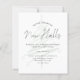 Cartão de Natal de Tint de Árvore de Cachorro Novo. Um alternativo de 4,5 pol x 5,6 pol com preço orçamentário, em um STOCK CARD SEMI-GLOSS de 110 lb, que é similar em espessura a um cartão postal. Os envelopes são um extra opcional e são ligeiramente maiores que o tamanho da placa. O minimalismo moderno com New Halls em um roteiro de na moda e uma silhueta verde de natal sábio pintada ao fundo. Personalize facilmente com sua mensagem e nomes e sua foto no verso.
