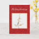 Cartão de Natal com Pássaro em Galho com Brilho Vermelho.