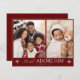 Cartão de Férias de Natal de Script Religioso. Este belo Cartões de foto de Natal apresenta um fundo vermelho com 'vamos adorá-lo' escrito em uma fonte serif clássica e uma bonito letra manuscrita, em branco, com duas estrelas em ambos os lados. Este cartão também contém duas fotos da sua família e do seu nome. No verso está o mesmo fundo vermelho, ao qual você pode adicionar outra foto ou texto adicional selecionando a opção "editar usando a ferramenta design".