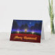 Uma cena de Natal tridimensional criou em Vue, com velas colocadas em vermelho em frente à garland de pinheiro acentuadas com ornamentos de vermelho e ouro. No fundo de neve estão árvores de abeto azul-esverdeado contra um céu fractal girando coberto por estrelas. Uma estrela brilhante solteiro domina o céu noturno. Em frente à decoração de férias está uma saudação brilhante de ouro Feliz Natal.