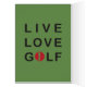 Xadrez de árgyle com fita e bola de golfe e viva o golfe do amor junto com sua saudação. Tudo pode ser mudado para suas próprias ideias.