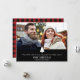 Cartão de Natal para casais em um moderno design de pinheiro branco e preto, com sua foto favorita. Adicione sua foto, saudação, mensagem e nomes. Esta placa se reverte para uma xadrez de búfalo vermelha e preta na parte traseira da placa.