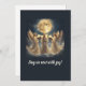 Um cartão de saudação de Natal com uma imagem encantadora de três anjos cantando na frente, cada um com halos suaves e expressões alegres. Eles seguram livros de canções e estrelas suaves e uma lua cheia brilha no céu escuro acima. O verso apresenta um espaço em branco para adicionar uma mensagem personalizada ou texto personalizado, tornando-o perfeito para enviar votos calorosos de Natal.