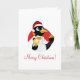 Cartão de Natal personalizável com uma ilustração de um pinguim imperador bonito com um chapéu vermelho de Papai Noel; design de animação de Natal para crianças, design de modelo com campo personalizado editável para o seu próprio texto, em fundo branco, ilustrado por Radka Kavalcova