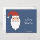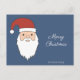 Cartaz com cabeça de Papai Noel e chapéu vermelho em fundo azul-da-noite e textos personalizáveis "Feliz Natal", nome da família e uma mensagem no verso. Um pouco de atenção para enviar à sua família e aos seus amigos para as férias do fim do ano. Você também pode usá-lo em negócios e enviá-lo aos seus clientes!
