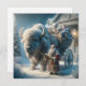 Bisão Puxando um Carrinho de Brinquedo de Presente de Natal e cartão de férias do Papai Noel. Personalize com sua própria mensagem e faça com que seja seu.