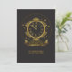 Um belo relógio dourado contra um céu negro estrelado faz um cartão de Natal dramático para enviar seus votos de Ano Novo. Perfeito também como convite para celebrações de Ano Novo.