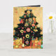 Este Cartão de Natal foi feito usando programação de inteligência artificial e minhas palavras para criar um cartão de cumprimentos no estilo de Gustav Klimt. Eu amo as decorações douradas e coloridas nas árvores. Cada lado do cartão tem uma árvore de Natal diferente.
