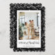 Foto preta elegante Cartão de Natal Feliz com um quadro preto brilhante com um cartões de natal com letra de mão.